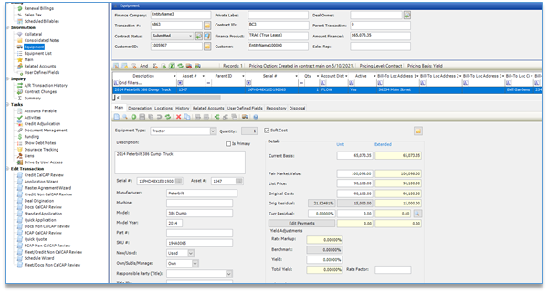9. Navigate to the new Contract to see the rolled over asset on the Contract Explorer - Equipment tab