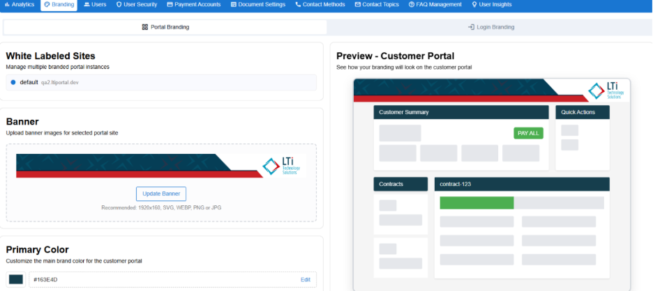 Platform Administrators have access to a variety of options to manage the branding of each Customer Portal site