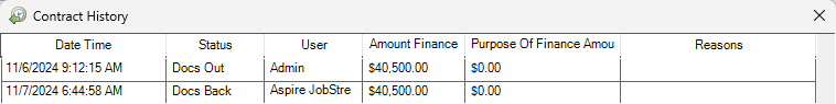 When the status is updated in ASPIRE by this functionality, a Status History entry is recorded.
